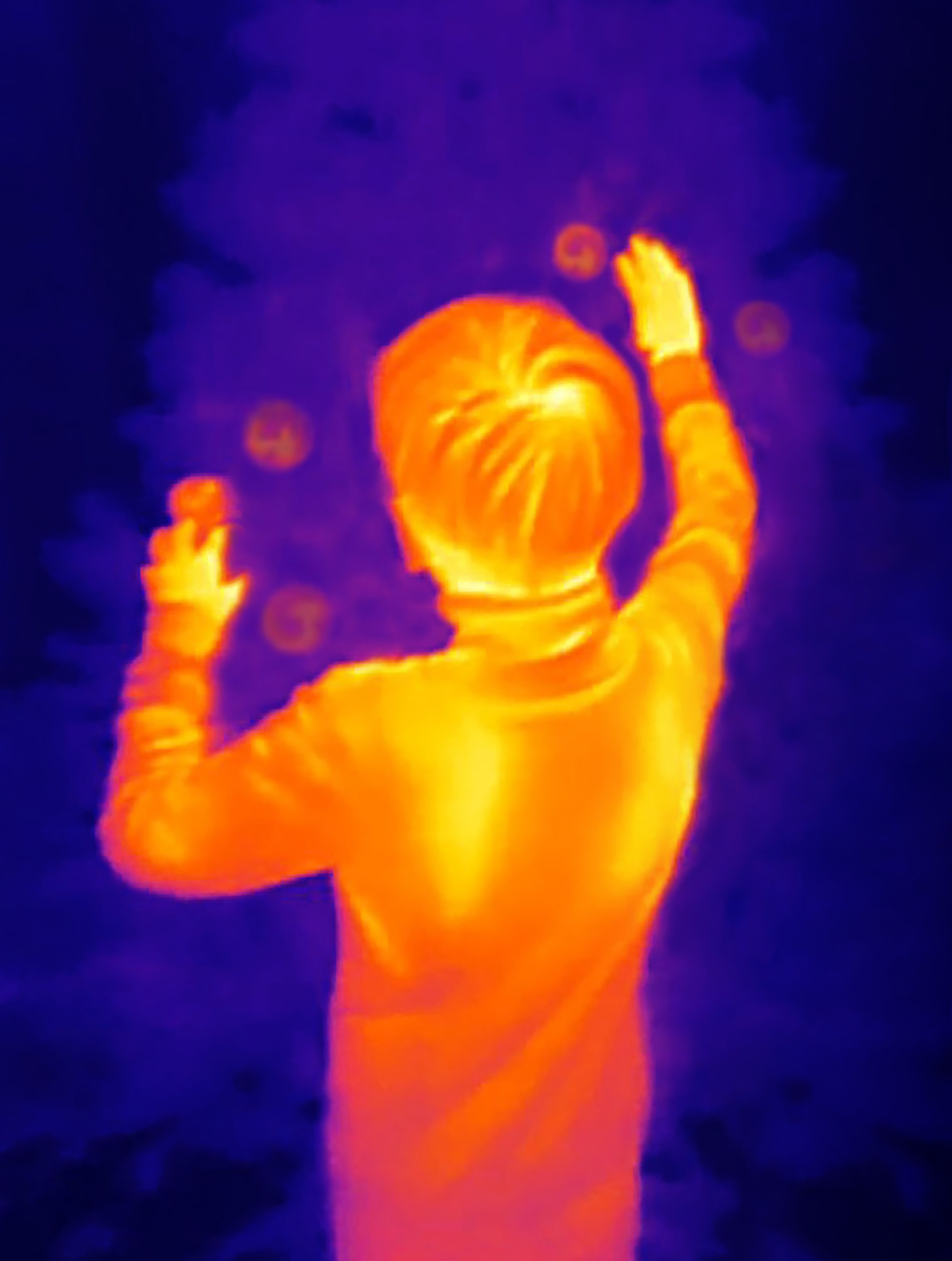 This photo project is an attempt to go beyond human capabilities. It's based on my curiosity, my desire to see things that are not visible to the human eye, to try on someone else's skin. Inspired by the boa constrictor's unique ability to perceive the infrared spectrum, I use a special camera to see the hidden energy of the world around me. Working with a thermal imager allows me to literally look under the skin of reality, capturing the thermal trace of a moment. The project serves as a reminder of how limited our daily experience is and how much energy pulsates right in front of our eyes, while remaining completely unnoticed.